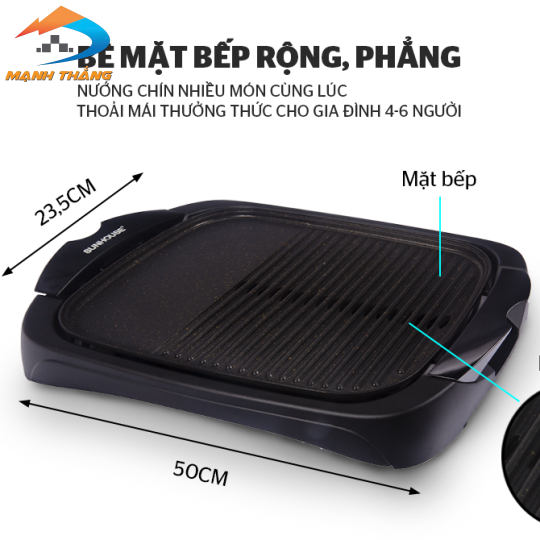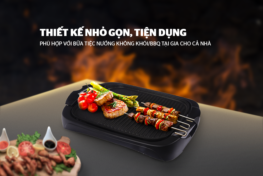 Mặt bếp rộng cho phép nướng cùng lúc nhiều thực phẩm, phù hợp cho bữa ăn gia đình từ 4–6 người. Thiết kế tối giản chi tiết giúp việc sử dụng và vệ sinh thuận tiện hơn.