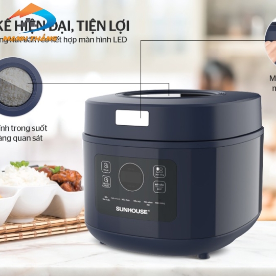 Nồi cơm điện tử Sunhouse SHD8802 tích hợp 6 chế độ nấu tự động: