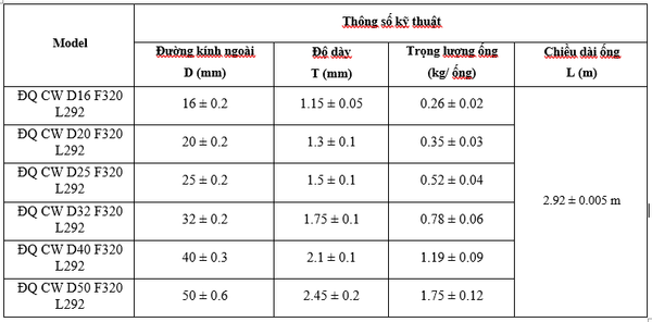 • Đa dạng đường kính, linh hoạt theo nhu cầu sử dụng