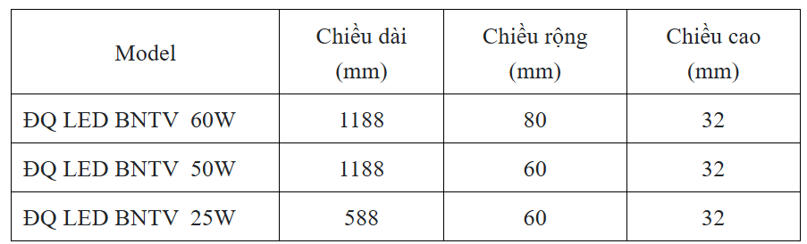 52014292 Bộ đèn Bán Nguyệt Tràn Viền ĐQ LED BNTV02 0.6 m 25W 3000K