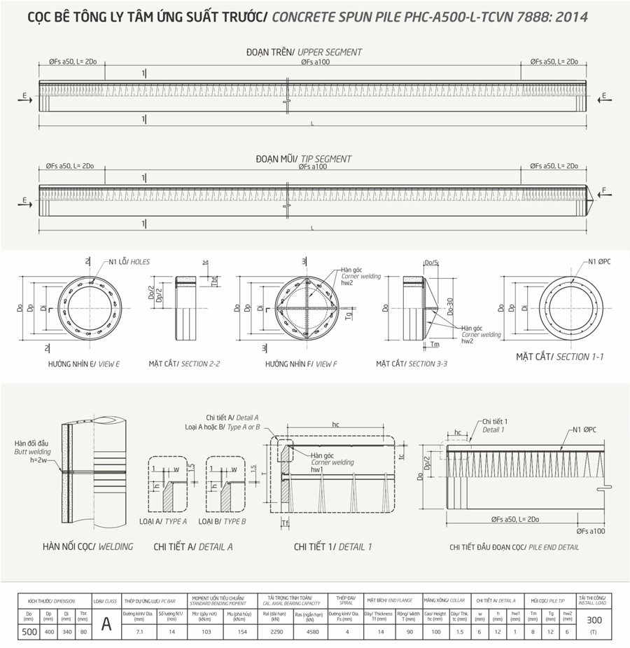 • Sản xuất theo thiết kế điển hình của cọc ly tâm PHC D400